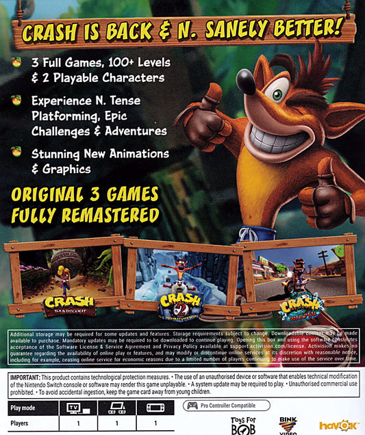 Crash Bandicoot N Sane Trilogy Switch